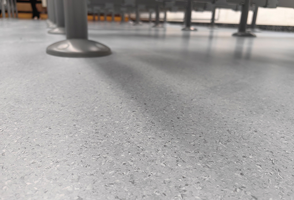 在核心性能表現上,大巨龍福龍 700 系列同質透心PVC地板精準匹配教學場景需求。課堂上,其卓越的吸音性能成為 “靜音守護者”—— 地板材質本身具備良好的隔音阻尼效果,能有效吸收腳步聲、桌椅挪動聲及外界環境噪音,大幅降低課間走廊喧鬧對課堂教學的干擾,讓師生們在安靜的氛圍中專注教學與學習,顯著提升課堂效率。而在課間休息時段,地板的防滑性能盡顯優勢:獨特的表面紋理設計增大了摩擦力,即便地面不慎灑水或出現潮濕情況,也能強效防止學生奔跑、穿梭時滑倒,為青少年學子的校園安全筑牢防線。